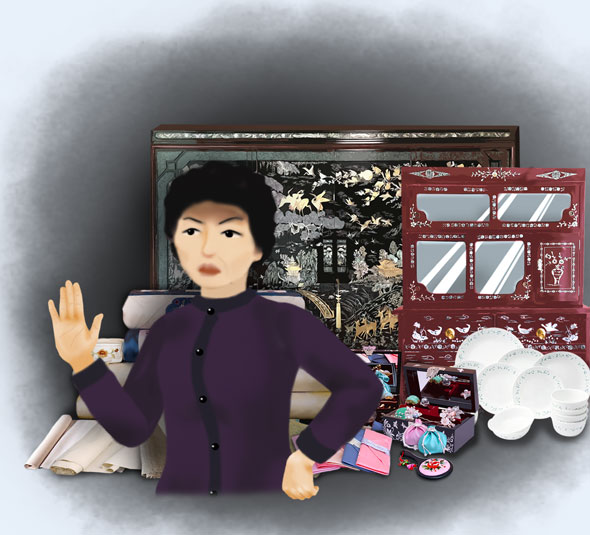 Ainsi, même sous ce titre de "belle-fille aînée", ma belle-mère m'a enlevé tous les cadeaux de mariage et les articles de dot que ma propre mère m'avait offerts, alors qu'elle avait elle-même contracté des dettes pour cela. Ma belle-mère ne m'a même pas donné une seule cuillère...