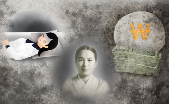 Cependant, lorsque je suis tombée malade, toutes ces énormes dettes sont devenues un fardeau pour ma mère. En effet, ma belle-mère n'avait jamais essayé de rembourser elle-même, pas même une seule fois. Lorsque j'ai demandé pardon à ma mère de l'avoir accablée avec mon mariage, etc., elle m'a répondu que je n'avais qu'à lui servir un plat de raie fermentée lorsqu'elle venait chez moi, mais je ne lui en ai jamais acheté. Loin d'être servie avec de la raie fermentée, elle avait beaucoup souffert en s'occupant de sa fille malade et en soutenant la famille de mon mari !