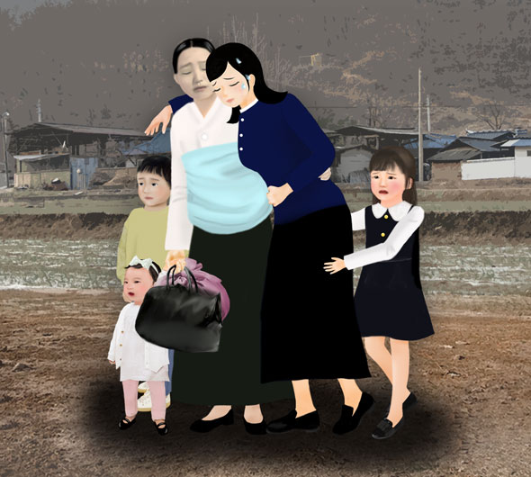Le lendemain, ma mère a fait rentrer mon premier et mon troisième enfant plus tôt que prévu de l’école afin de les emmener à l'hôpital universitaire, car il était impossible de savoir combien de temps cela prendrait à l'hôpital universitaire de Gwangju. Elle a porté sur son dos le quatrième enfant âgé de 9 mois et a fait marcher le petit de trois ans tout en tenant à la fois un sac contenant un biberon de lait et un sac de couches dans ses mains et en m'aidant à me rendre à l'hôpital universitaire car je ne pouvais pas bien marcher.