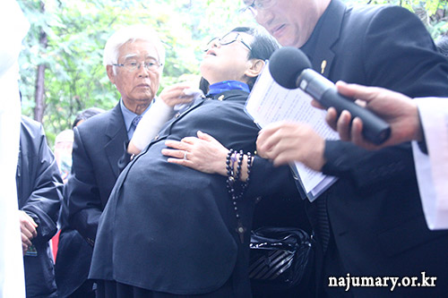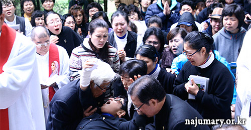 Julia (en pleurs) : «C’est devenu un monde qui mérite certainement un châtiment. Toutefois, regardez le Pape qui est une âme humble, ceux qui ont le même esprit que lui et toutes ces petites âmes qui prient à Naju. Je vous en prie, n’envoyez pas de châtiment.»